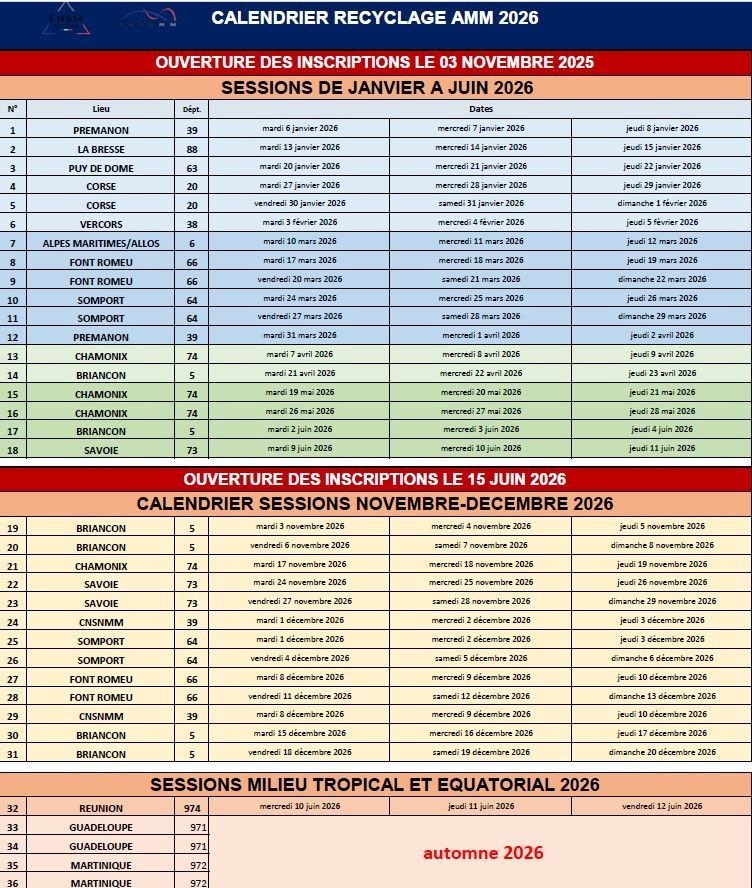 Voici les dates des sessions du recyclage DE AEM pour 2026